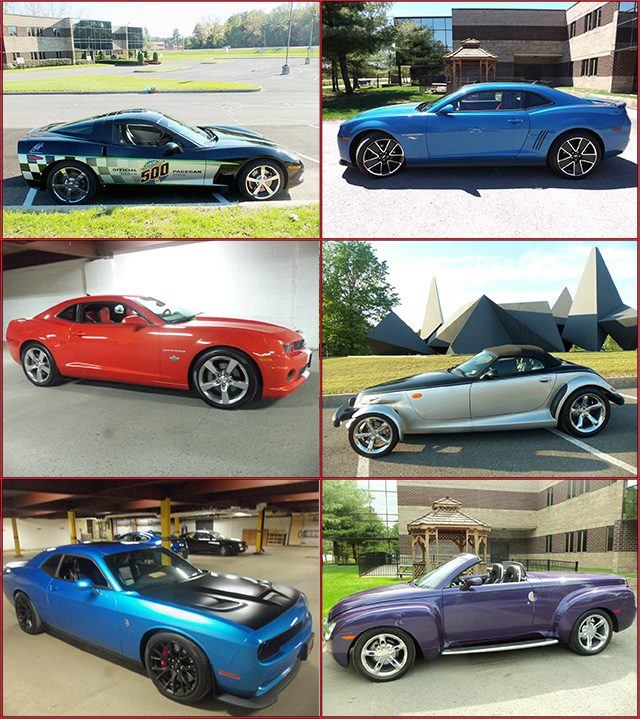 All cars have low miles 2008 Chevrolet Corvette Indianapolis 500 Pace Car, Black and Silver, 1 of 234 Coupes, <100 miles, Automatic, all options including Bose Stereo with CD and Navigation, Custom Embroidered Leather Seats and Interior, original owner, 2013 Chevrolet Camaro LT Hot Wheels Special Edition Coupe, Kinetic Blue Metallic with Flat Black Stripe, #252 of 1524, #252 of 263 LT Coupes <900 miles, Automatic, Plastic still on the Custom Leather Seats and Floor, Boston Acoustics Stereo, Original owner, still on the MSO 2010 Chevrolet Camaro SS Indianapolis 500 Pace Car Edition Coupe, Inferno Orange Metallic with Pearl White Rally Stripes, 1 of 294, <31K miles, Automatic, all Options including Custom Embroidered Leather Seats, Boston Acoustics Stereo 2001 Plymouth Prowler Black Tie Special Edition, Custom Black on Silver two-tone paint, 1 of 163, < 750 miles, Automatic, all options including Infinity Stereo with 6 Disc CD Changer, Leather Interior, Original owner, still on the MSO 2016 Dodge Challenger SRT Hellcat, B5 Blue, <3K miles, Automatic SCV8, with all options, including Black Hood and 20″ Wheels, Power Sunroof, HK Stereo with Navigation, Upgraded NAPA Leather Interior 2004 Chevrolet SSR Convertible Pickup, Ultra Violet optional paint, <28K miles, Automatic, Corsa Exhaust, all options including Chrome Wheels, Running Boards, Additional Gauges, 6 Disc CD Changer, Leather Interior Not pictured: 2014 Cadillac ELR Coupe Crystal Red optional paint with Cashmere Leather and Wood Interior package, 1 of ~1500 built in 2014 & 2016, <1K miles, all options including Luxury and Security Package, two-tone 20″ Wheels, Bose Stereo with CD & Navigation, original owner, still on the MSO, Mint Condition 2009 Hummer H3 SUV, Solar Flair (Orange) optional paint, <9K miles, automatic I6, most options including power sunroof, Monsoon Stereo with 6 disc CD Changer, original owner, still on the MSO, Excellent Condition Call for more information |