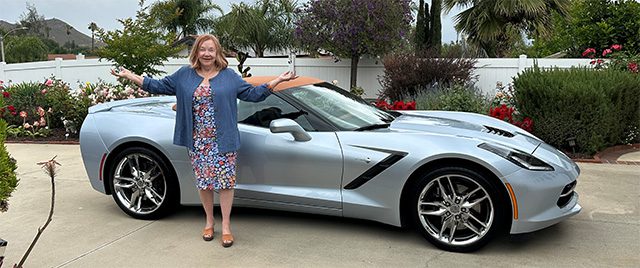 Mike called me and said, ‘I understand I’m going to have to beg you to buy this car’. He made me an offer I couldn’t refuse then and there and the next day we closed the deal. Two days later the car was delivered to my house and a photo shoot ensued with my beautiful 2023 Riverside Garden Tour gardens as backdrop. Today is my 81st birthday so it and Thundering Thursday are my birthday presents. It’s never too late to drive a Vette. Thanks to Mike and Chad and Jeff for helping me make my dream come true. Gale H. |