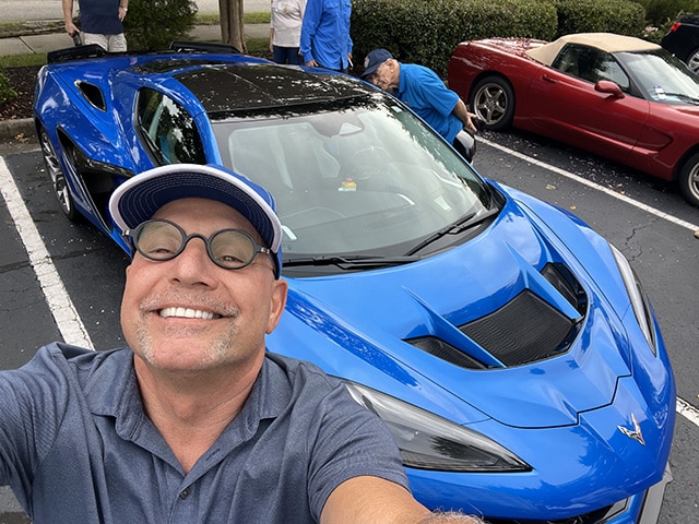 Mike is attending the NCRS 2024 Nationals in Hampton Roads, VA, where his 1967 Marina Blue L89 is being judged for Duntov Mark of Excellence Award. In the parking lot, Corvette Chief Engineer John Holder was spotted showing off his 2025 ZR1.